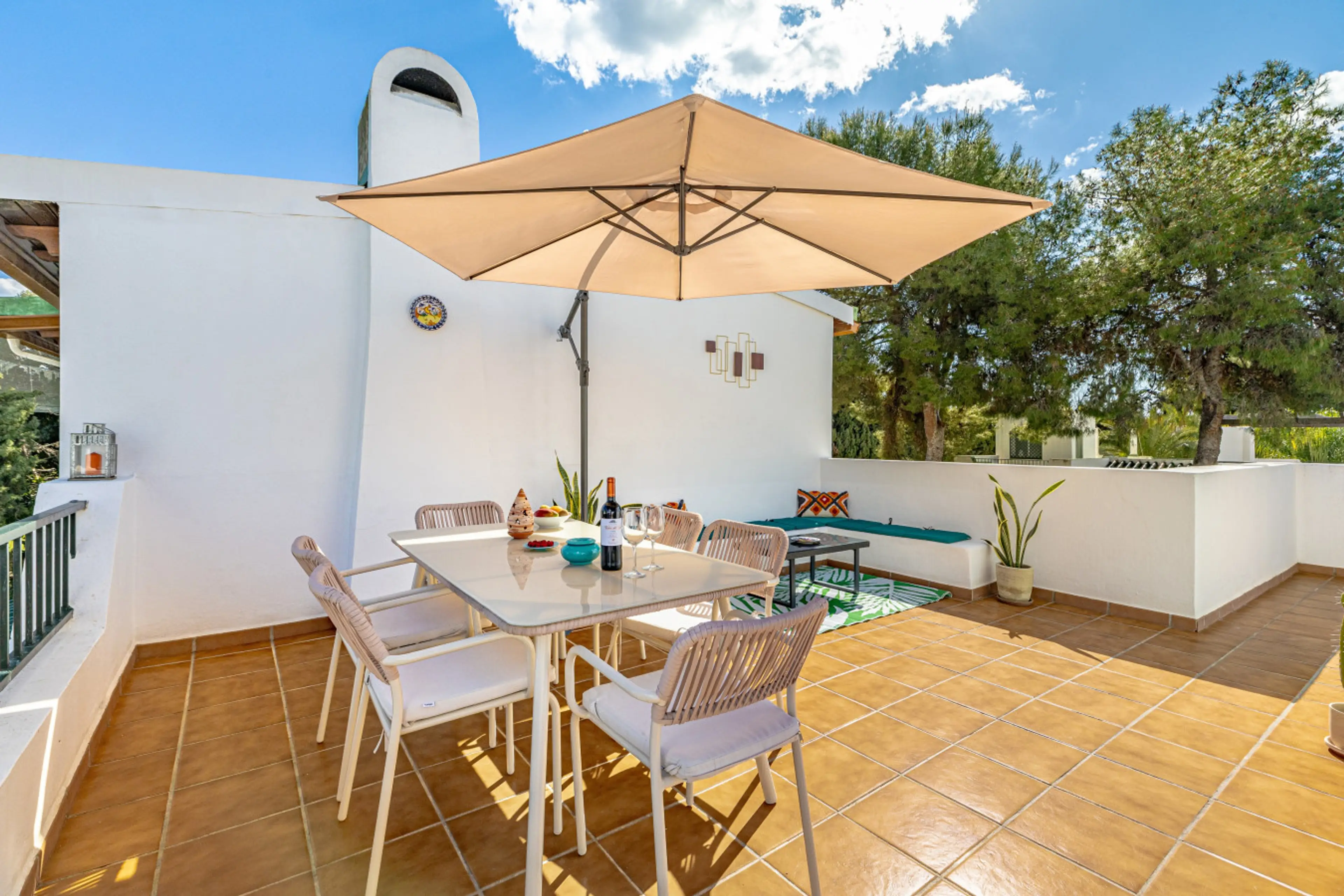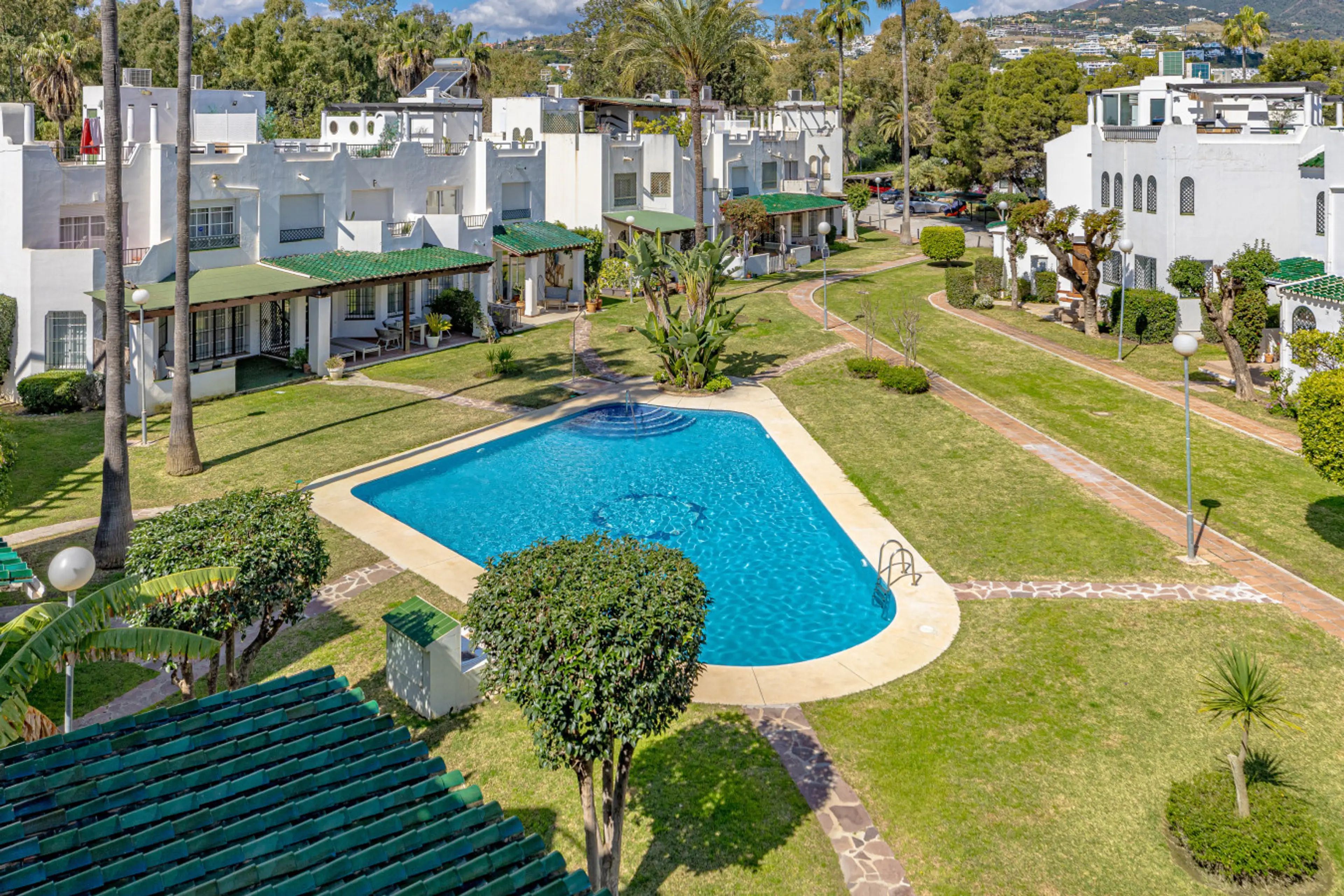 Jardín precioso por dentro de la comunidad! Hay piscina y poca gente,estuvimos en principio de octubre pero tiempo muy agradable