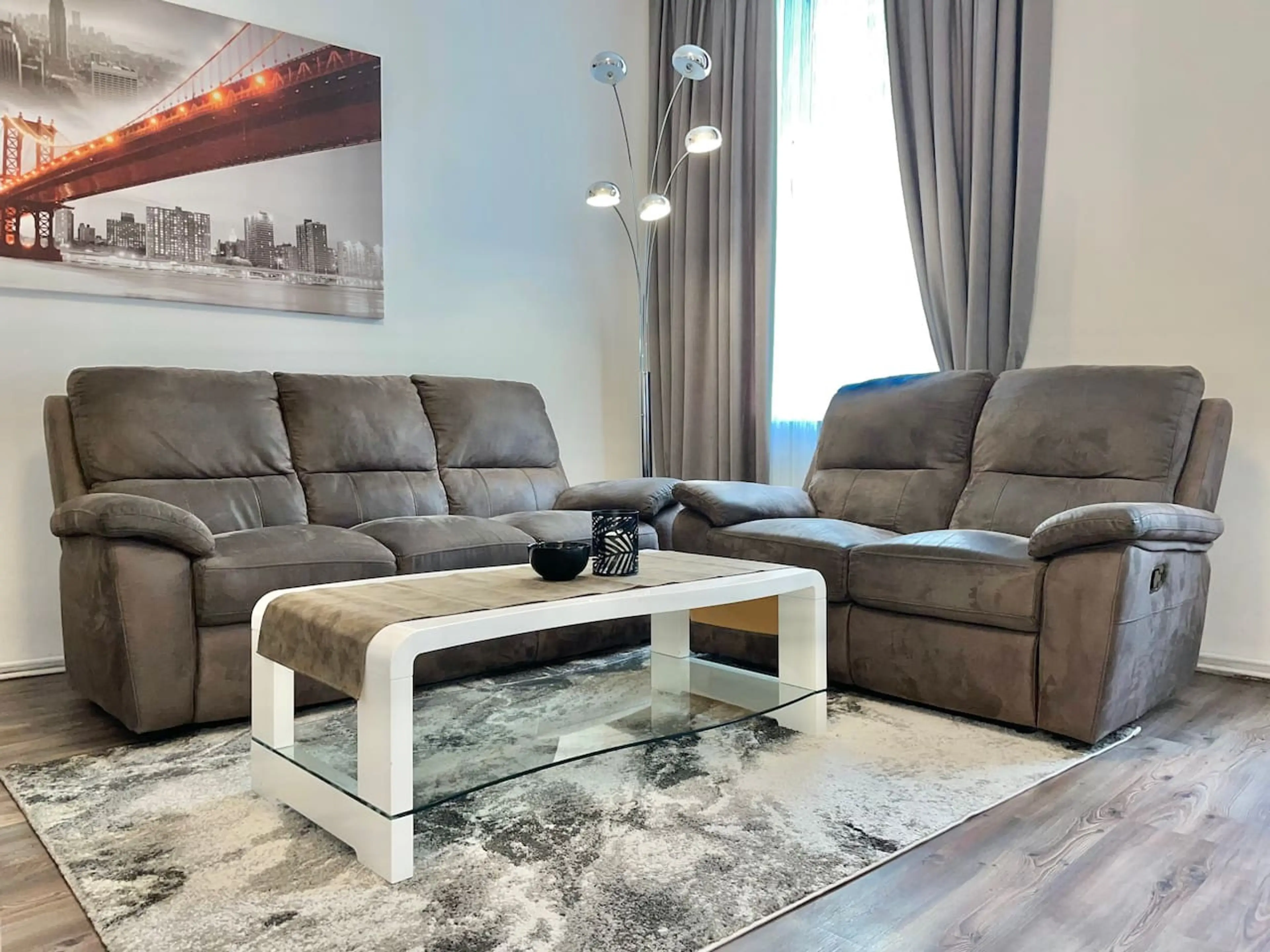 Drop your bags and sink into massive reclining sofas in this spacious 2-bedroom Vienna apartment. Designed for ultimate comfort, this flat gives your group plenty of room to stretch out. The ultimate location hack: walk 1 minute to the U3 subway and ride just 4 minutes to St. Stephen’s Cathedral! Sk...